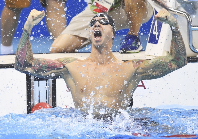 France’s star sprinter Florent Manaudou, the event’s heavy favorite, finished second by one hundredth of a second. Ervin’s U.S. teammate, Nathan Adrian of Bremerton, touched the wall third. Adrian won a gold medal on Sunday anchoring the 4×100 free relay and then won a bronze in the 100 freestyle in Wednesday.