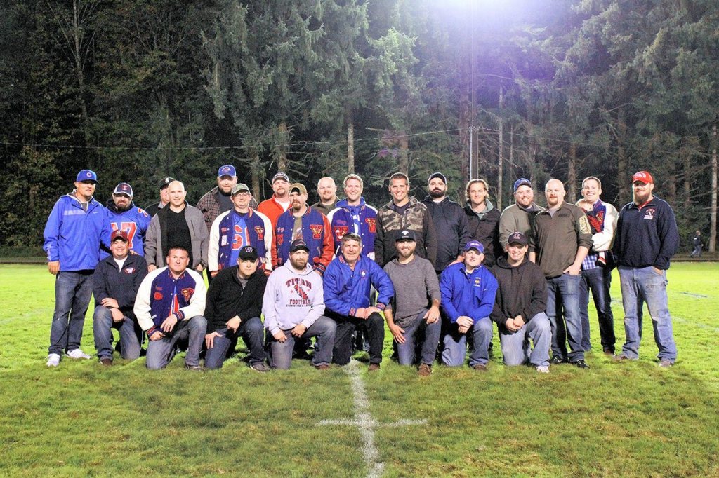 About two dozen members of Willapa Valley’s 1996 and 2001 state B-11 championship teams were honored during halftime festivities. Current Willapa Valley superintendent Rob Friese was the head coach of both teams and Titan head coach Josh Fluke and assistants John Peterson, Greg Wonhoff and Eric Clements were involved with at least one of those clubs as either players or coaches.