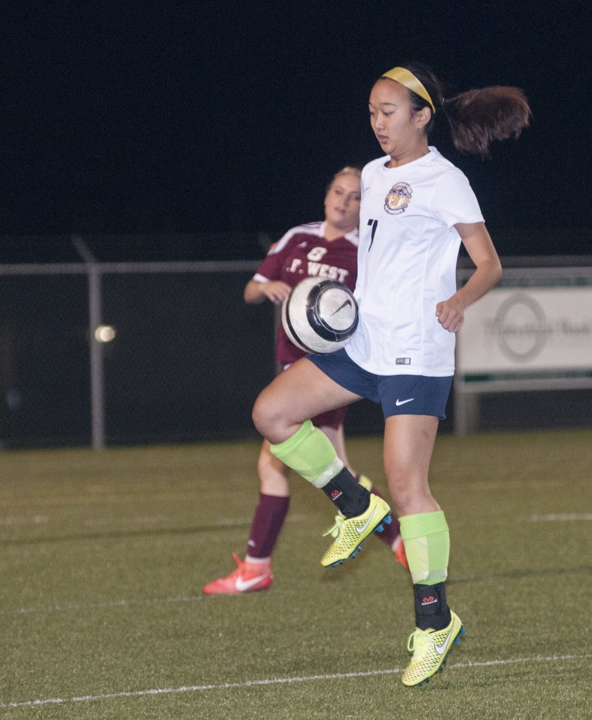 Six minutes after kickoff, Housden knocked home her first goal of the night. Taking a long through ball 40 yards from goal, the speedy forward split two Chehalis defenders and left goalkeeper Kyndra Haller alone. Housden slipped the ball into the left side of the net for the 1-0 lead.