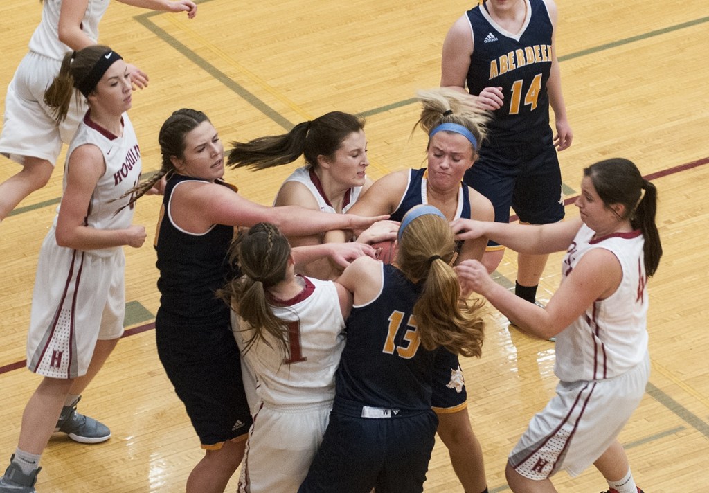 In addition, Hoquiam’s predominantly man-to-man defense gave Aberdeen fits throughout. The Bobcats shot only 19 percent from the field while committing 23 turnovers.