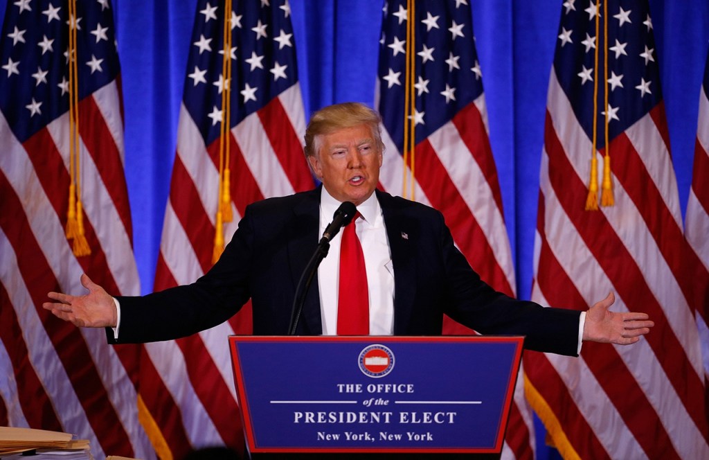 The claim was one of several bizarre moments at a wide-ranging news conference, Trump’s first since July, that also touched on his business conflicts, his biggest campaign promises and another of his main foils, the media.