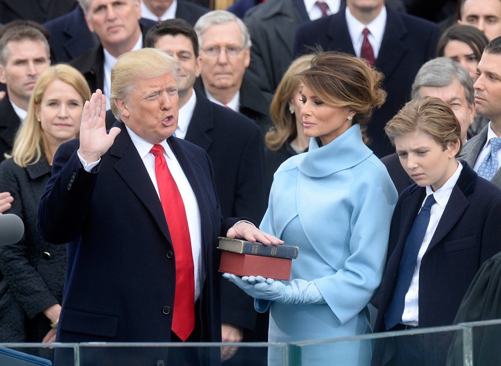 As Trump took the 35-word presidential oath, his wife, Melania, and their 10-year-old son, Barron, looked on beside him. A few steps away were Trump’s four adult children — Donald Jr., Ivanka, Eric and Tiffany. Also on hand: Obama, who along with his wife, Michelle, jetted off one last time Friday on the executive 747 airplane — no longer designated Air Force One for an ex-president — to Palm Springs, Calif., for a desert vacation.