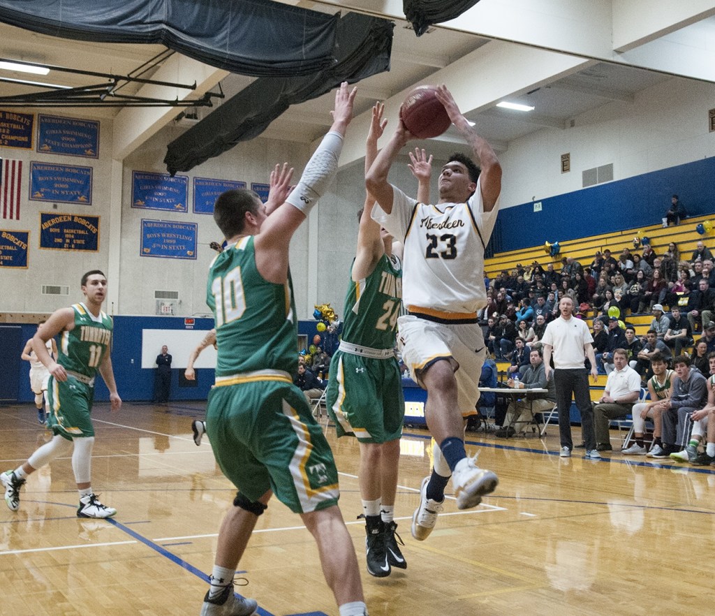 Aberdeen’s job got tougher in the paint in the second half after senior Braden Castleberry-Taylor fell hard on his shoulder fighting for a rebound with just under 3 minutes to play in the first half. Castleberry-Taylor didn’t return, shifting a Bobcat low-post committee into the paint.