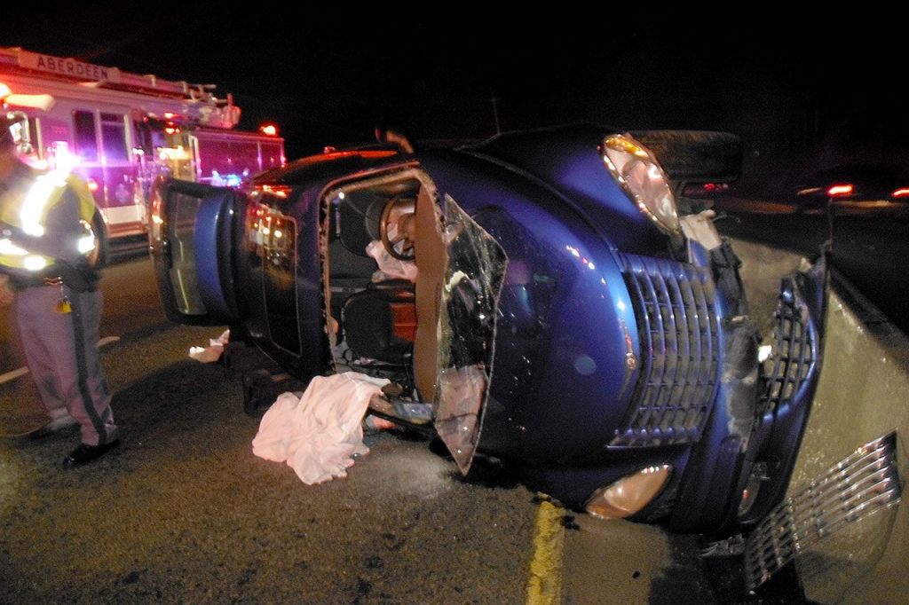 The wreck occurred just after 7:30 p.m. A blue 2004 Chrysler PT Cruiser was heading eastbound toward Central Park when the driver, described as a 76-year old Aberdeen woman, crossed from the right into the left lane, striking the Jersey barrier. The impact caused the vehicle to roll, eventually coming to rest on the passenger side in the left hand lane.