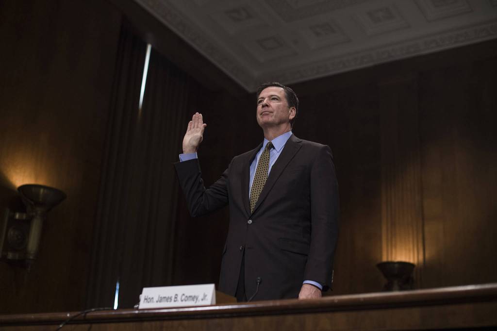FBI Director James Comey is sworn in during a Senate Judiciary Committee hearing on May 3. He was fired abruptly by President Trump on Tuesday.                                (Tom Williams/Congressional Quarterly)