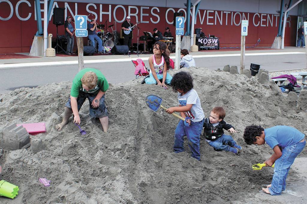 The kids’ sandpit at the Ocean Shores Convention Center was a popular spot at the 2016 Sand & Sawdust Festival. (Angelo Bruscas | GH Newspaper Group)