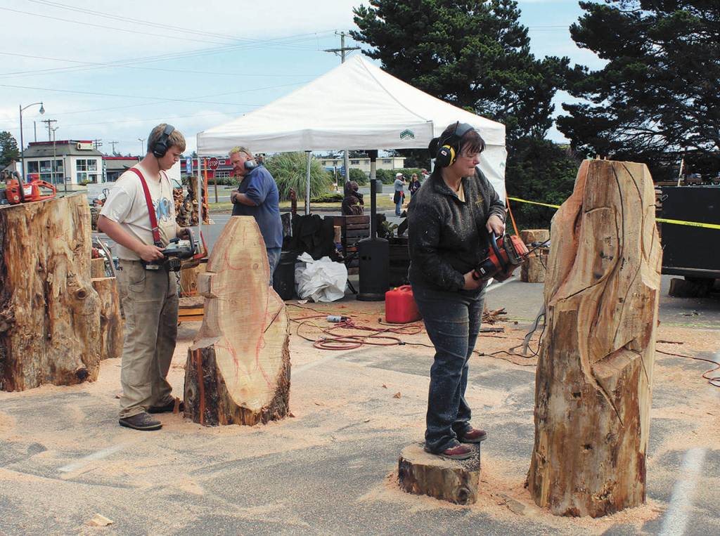 The event has added an element that Hansen said many carvers are excited about: Organizers have arranged for a big timber “slab cutter” to be on-site. She said this will make it much easier, and thus more likely, for carvers to make benches, because working from a precut slab (in this case, old-growth cedar), eliminates a lot of the prep work.