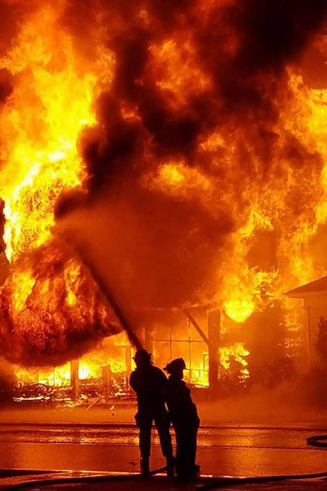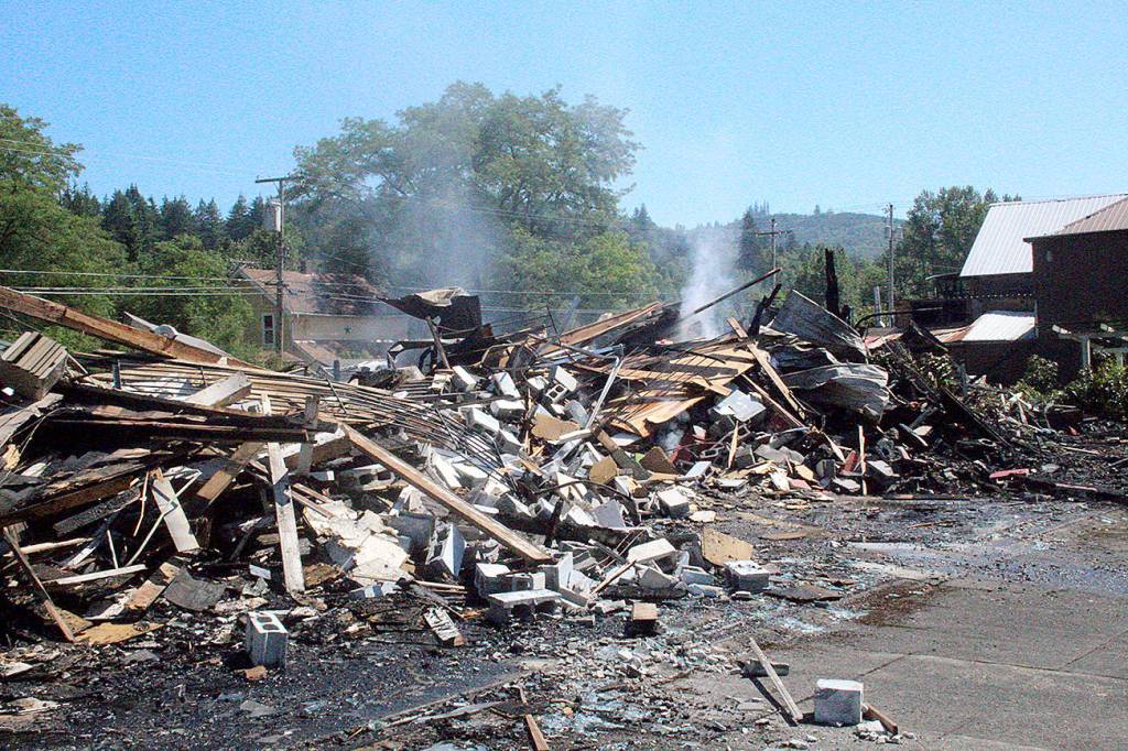 Grays Harbor Fire District 1 Chief Bill Rodocker said a structure fire call was received at about 10 p.m. When firefighters arrived they found that the hardware store was fully in flames, as was the single residence to the east of the hardware store and the old Oakville liquor store to the west.
