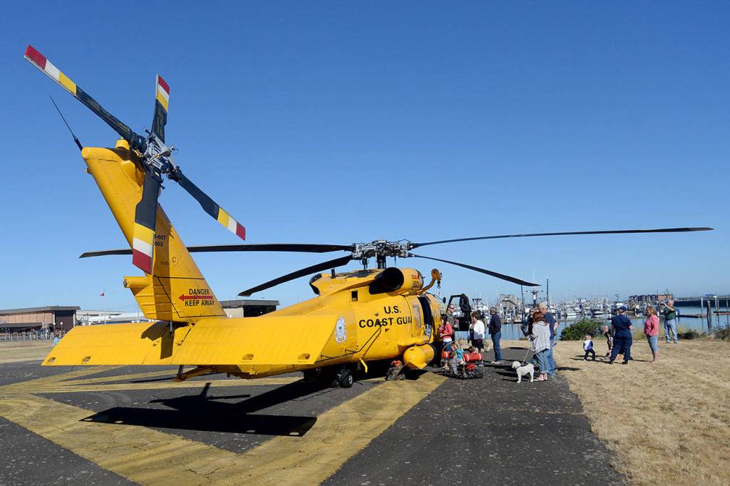 Local law enforcement and emergency services were there to watch: Hoquiam Police Chief Jeff Myers, Sheriff’s Office Chief Criminal Deputy Steve Shumate, Art Cole from South Beach EMS and too many more to list. Also there were Hoquiam City Administrator Brian Shay, Westport Marina Business Manager Molly Bold, Port Commissioner Jack Thompson and County Commissioner Randy Ross. Several hundred civilians showed up to watch the drill and even got a chance to walk around inside the three helicopters and other pieces of equipment on display at the Coast Guard station next to the launch.