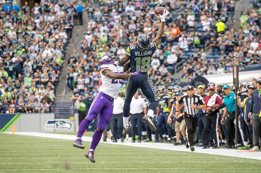 Darboh had just three catches in the preseason, all in Thursday’s final exhibition game at Oakland. He spent all of training-camp practices catching throws from backup quarterbacks. Williams was grabbing passes from Russell Wilson. But the Seahawks weren’t going to cut a third-round pick, Darboh, a few months and zero real games after drafting him. They’ve invested too much scouting effort and draft collateral to do that.
