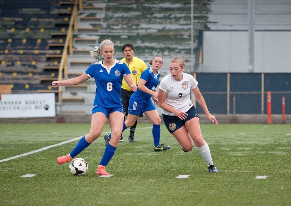 Elma’s Kaelyn Burgher launched a mid-range attempt in the waning seconds that Bobcat goalkeeper Reagan Glanz easily handled.