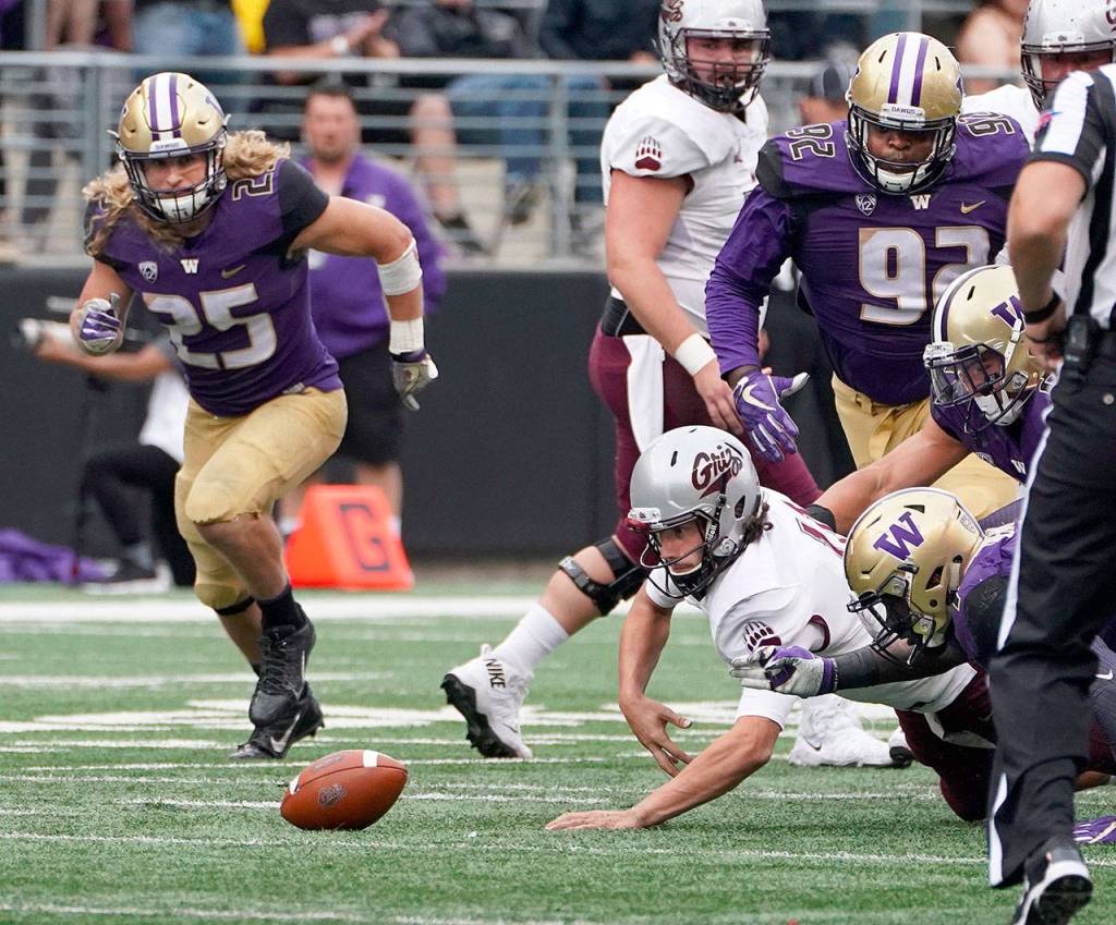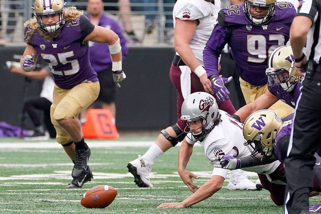 More conspicuously, Washington (2-0) forced four turnovers — two interceptions and two fumbles — to ensure the Grizzlies never even sniffed the end zone. Seemed Montana’s longest runs were the ones back to the sideline after giving up possession.