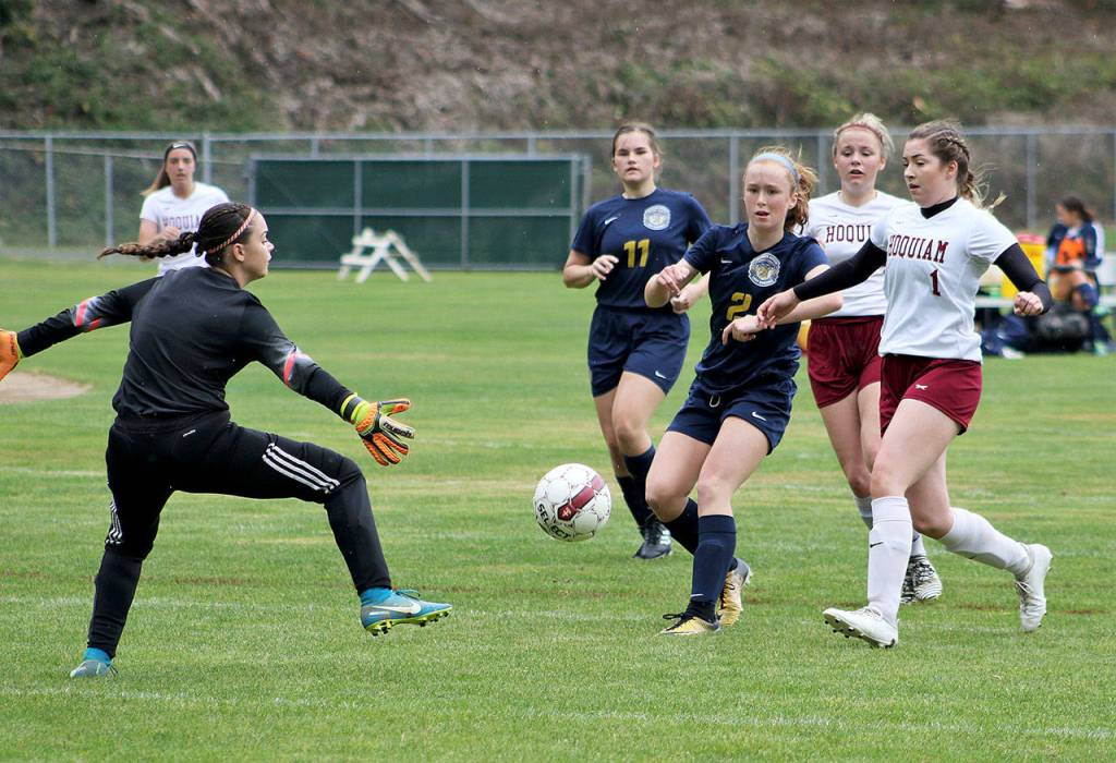 Hoquiam’s Maya Jump blasted a shot in from around 22 yards out with less than two minutes left on the clock to add another marker for the Grizzlies, but the Bobcats had already added more than enough offense.