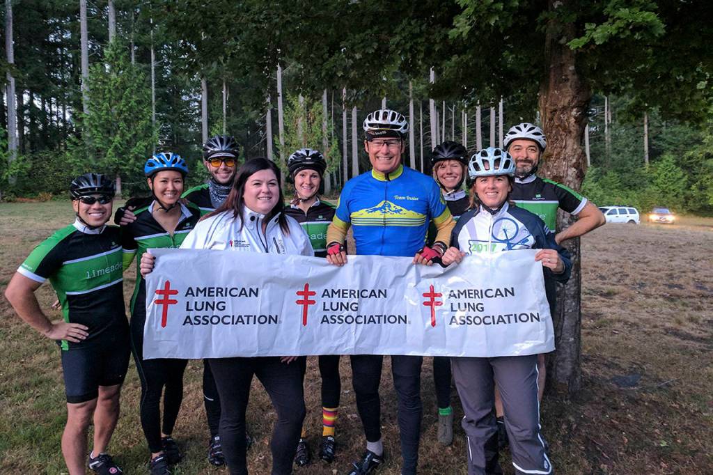 CSM Brian Flom of Joint Base Lewis-McChord was the event’s top fundraiser. He said he rode because the physical push helps him combat PTSD. Flom led five other JBLM residents as “Team Protectors”: Michael Dearborn, David Lintz, Jason Tillero, Aaron Whittle and Jennifer Whittle.