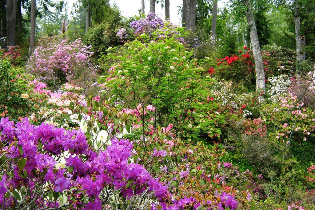 If you want to get to know some of the wild species of rhododendron, we have a great resource in our backyard. The Rhododendron Species Foundation and Botanical Garden is a nonprofit located in Federal Way dedicated “to conservation, research, acquisition, evaluation, cultivation, public display, and distribution of Rhododendron species.” It features over 700 of the 1,000 known species of wild rhododendron.