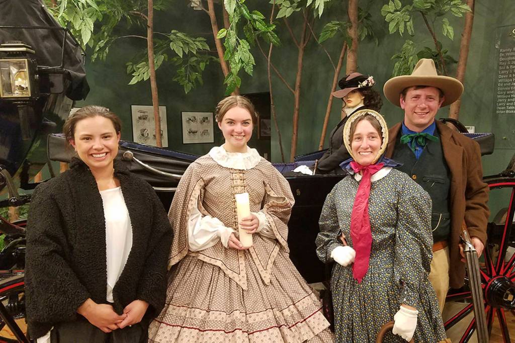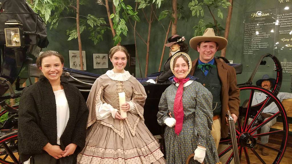 From left, actors Gracie Manlow, Mary Cooley and Scott and Pam Newman played 19th century characters Saturday at “An Enchanted Evening,” a fundraiser for the Northwest Carriage Museum in Raymond. The event was sold out, and Curator Jerry Bowman provided insight into the 19th century carriage industry during an entertaining and informative tour. Later this week, Bowman will be featured in the TV show “Mysteries at the Museum,” telling the story of Mary Fields, the first African-American woman to acquire a U.S. Postal Service stagecoach route. The episode will air Thursday on the Travel Channel at 6 p.m. and again at 9 p.m.