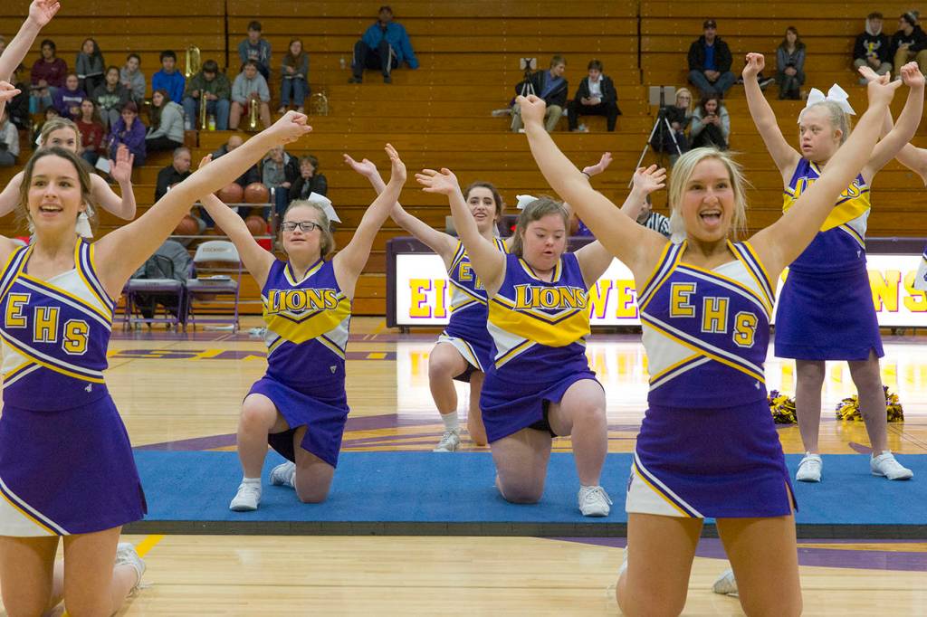 A thick rubbery mat was unrolled, and out came Sparkle, an Eisenhower cheer team of six special needs athletes and five members of the varsity cheer team.