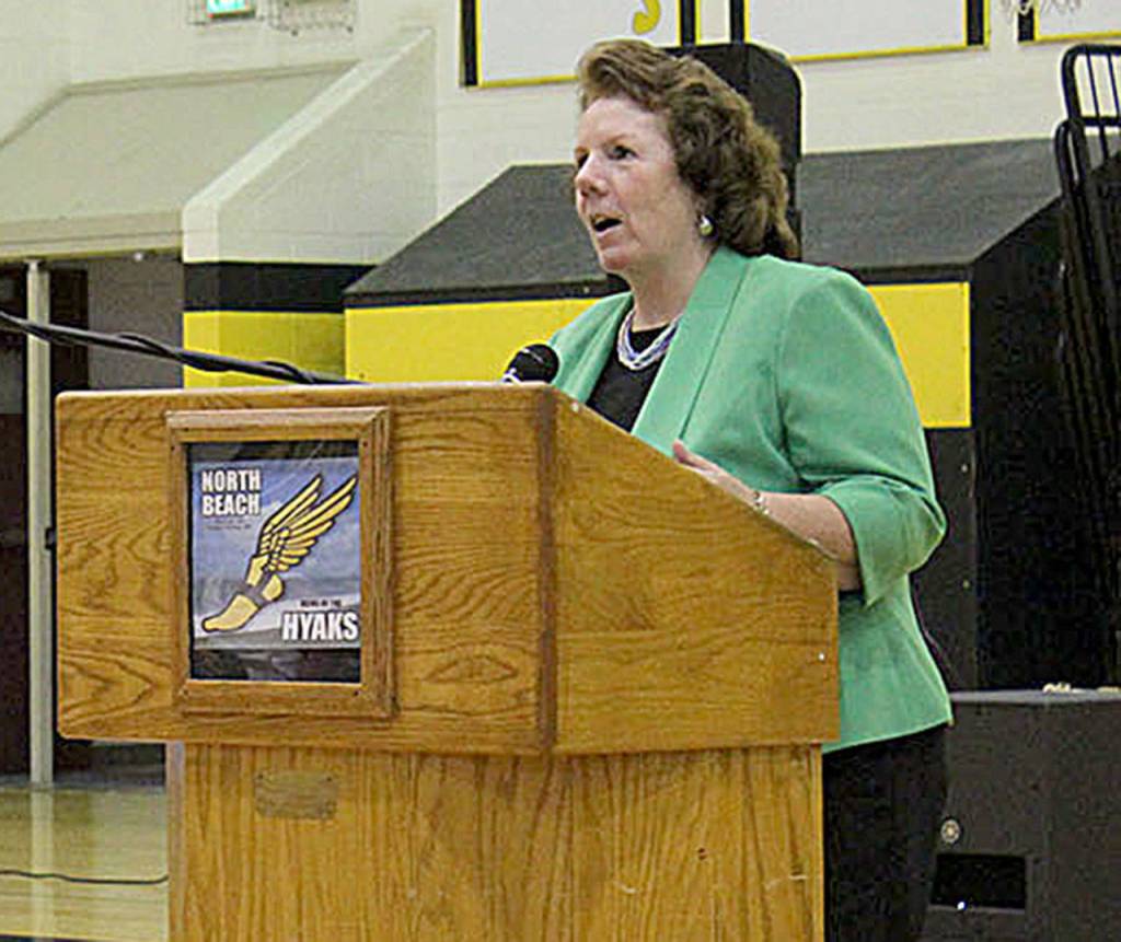 Speaking to local business owners and operators at the Ocean Shores Convention Center’s 2018 Event Showcase, held Jan. 10, Holcomb welcomed North Beach Junior/Senior High’s acceptance into the GEAR UP program as a potentially huge difference-maker for area youth, and one that needs the community’s support. She said the program has a matching component that can help businesses that do things such as creating opportunities for job-shadowing and other involvement with students.