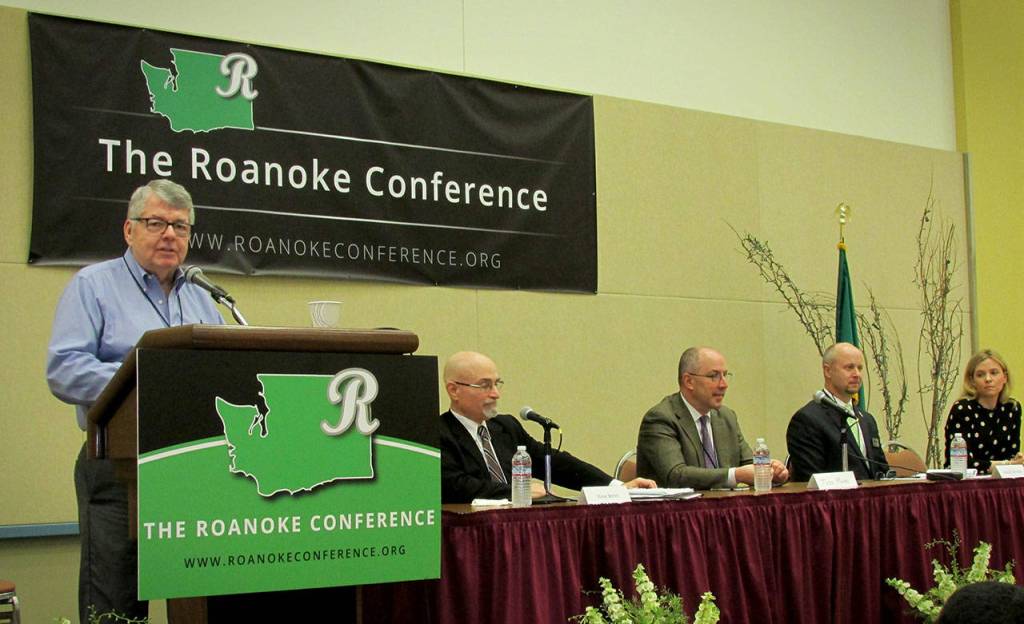 The national debate over the presidency of Donald J. Trump took center stage in Ocean Shores Saturday morning when the annual Roanoke Conference focused on the first year of the Trump Administration.