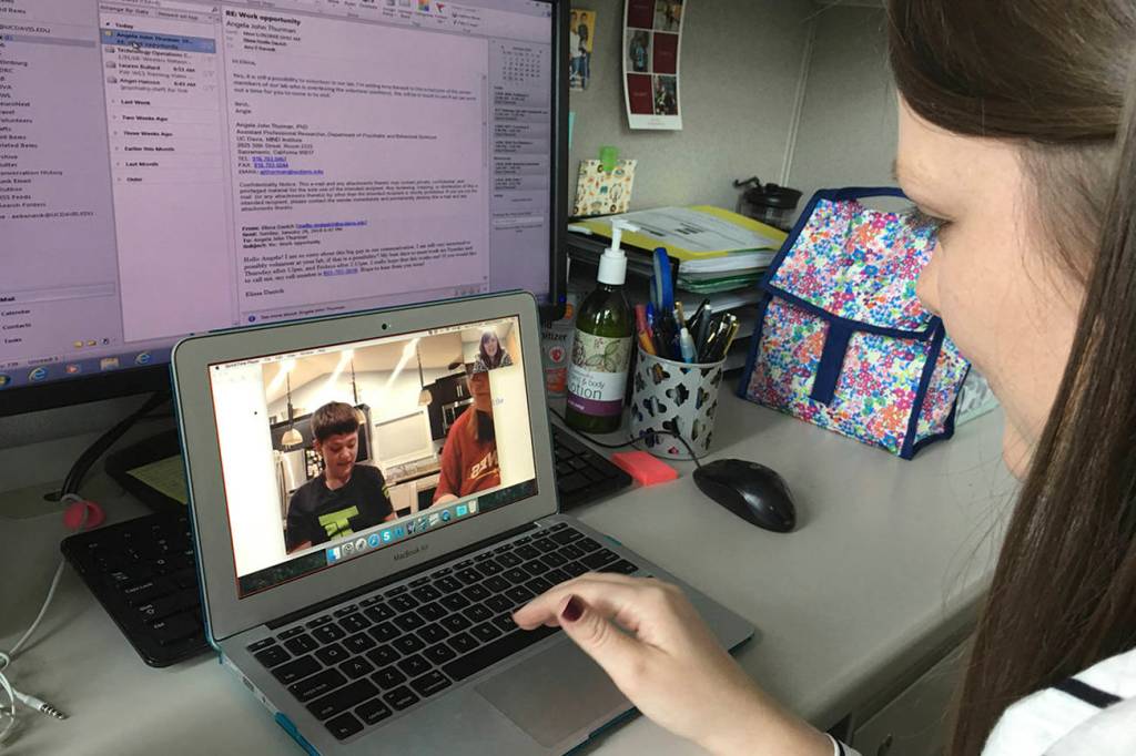 Three times a week, Kristen Lundstrom opens her laptop from her home in Carroll, Iowa and speaks to a speech therapist at UC Davis’ MIND Institute about ways to help her 14-year-old son, Tyson, grow his vocabulary and better communicate. Tyson has Fragile X Syndrome, which is a genetic condition that causes a range of developmental issues and learning disabilities.