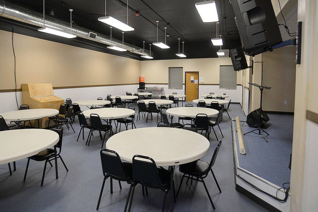 The eating space also serves as the mission’s chapel. People from local ministries come to speak on the stage and movies can be shown on a big screen.