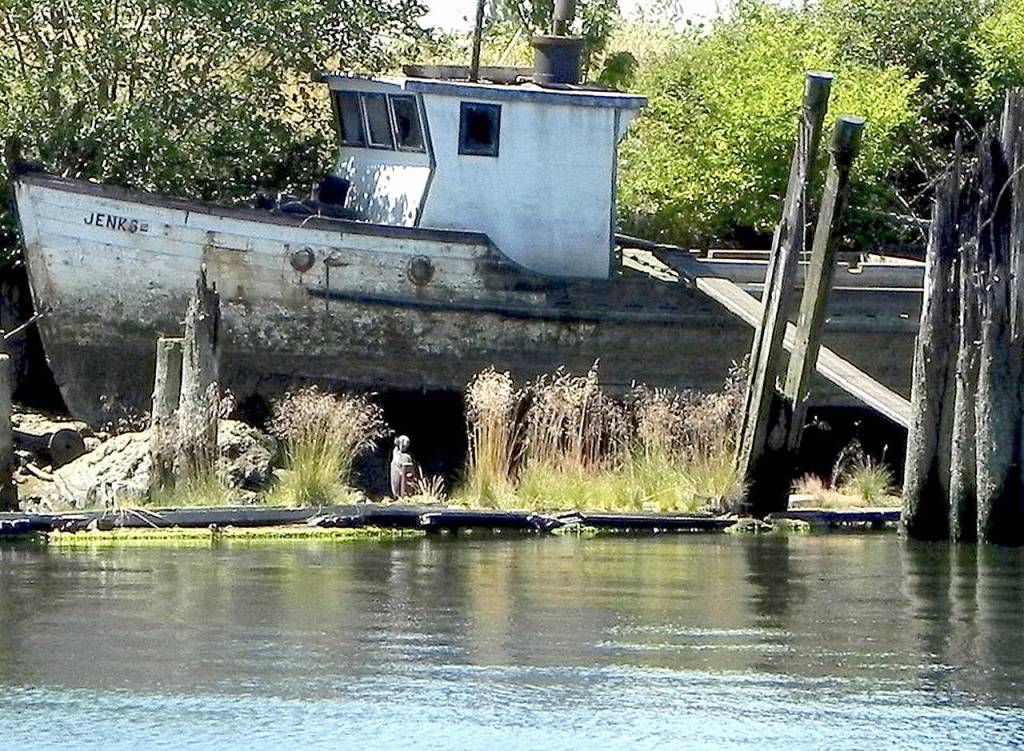 For decades, locals and tourists driving along Riverside Avenue into Hoquiam could glance across the Hoquiam River at the west bank and see an old wooden boat nestled among the pilings.
