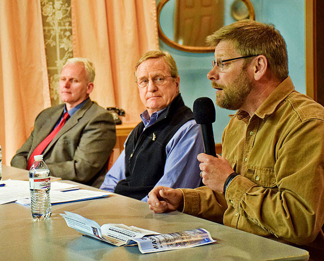 Sen. Kevin Van De Wege, Rep. Steve Tharinger and Rep. Mike Chapman are all from the northern section of the district (Port Angeles and Sequim), and they held town hall forums March 22 at Forks and Ocean Shores to report on the recently completed legislative session in Olympia. The lawmakers, all Democrats, touted the passing of a budget that “invests in education, mental health and jobs,” as well as addressing the state’s constitutional obligation to fund education under the so-called McCleary court decision.