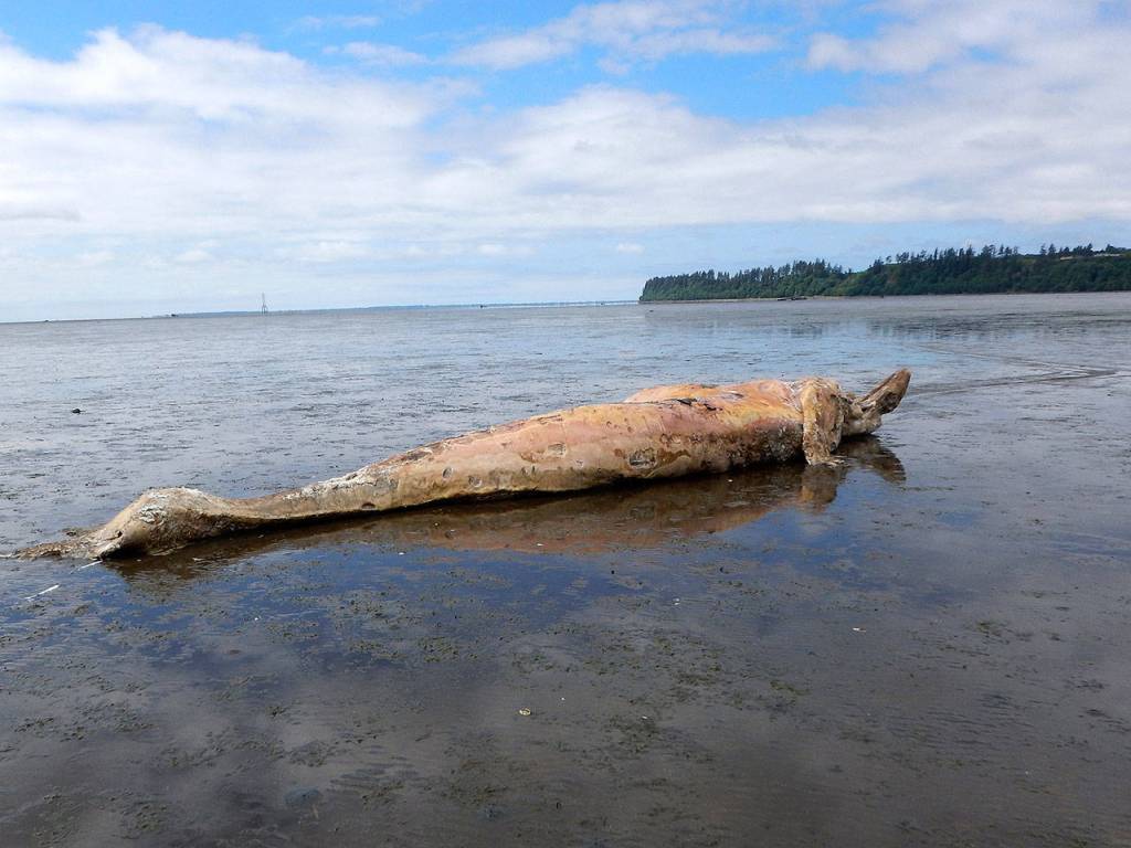 Remains of gray whale wash up near Bowerman Airport