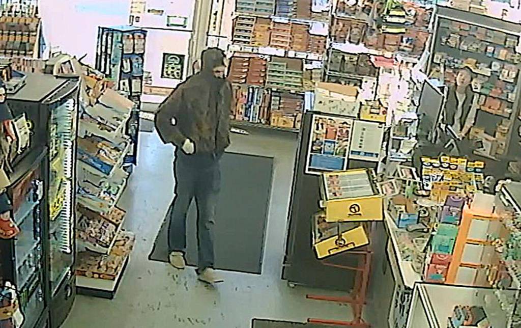 Security footage from the store revealed the suspect was wearing a camouflage hunting jacket with a hood over a beanie hat, white gloves, long dark-colored blue jeans and white shoes. The male had the jacket zipped up high so it covered the bottom of his face, the video shows.
