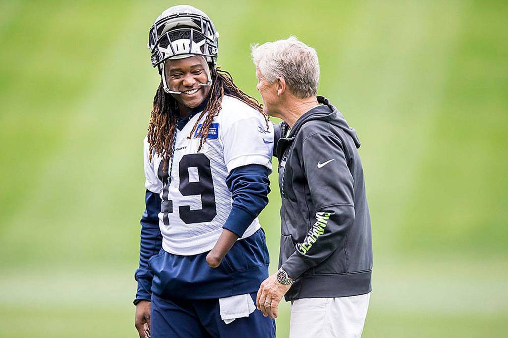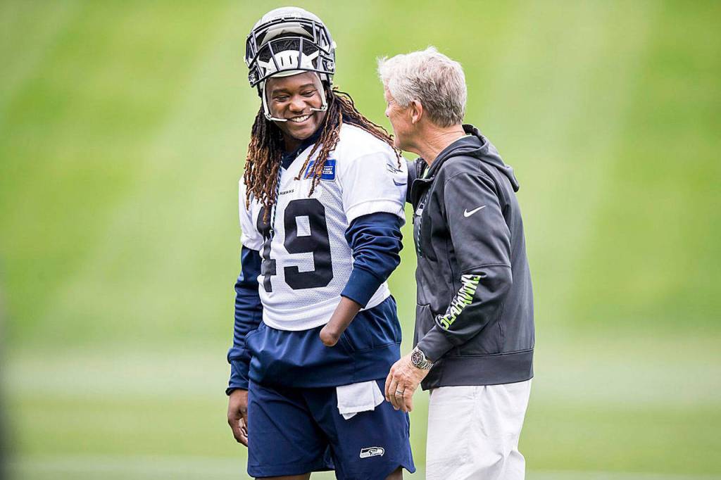 Chris Carson was maybe the standout player of the Seahawks’ offseason, showing he is fully recovered from the ankle injury that ended last season and looking even more assured and confident in his second NFL season. If the season began today he would likely be Seattle’s starting tailback.
