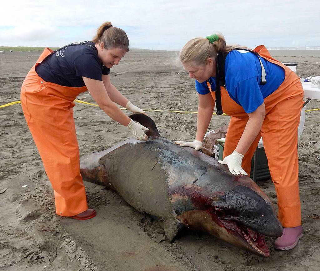The 7-foot, 8-inch female was in a moderate to advanced state of decomposition, said Huggins. Genetic samples were taken for analysis at the Northwest Fisheries Science Center to determine whether it belonged to the southern resident, transient or offshore population.