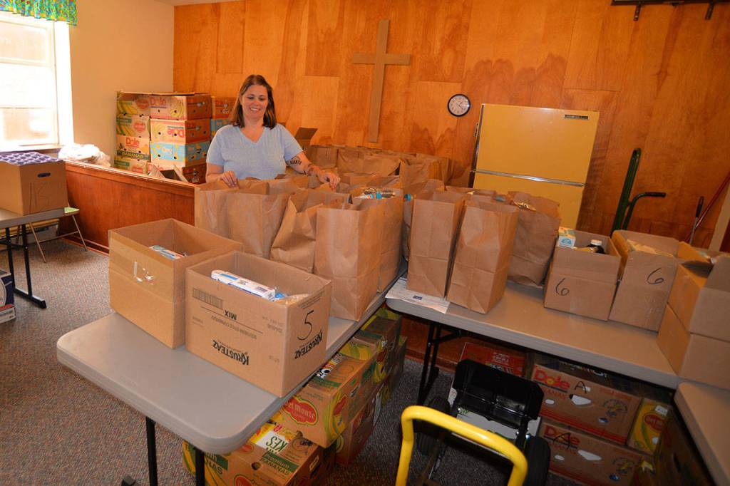 Cher Keller, interim director of the Aberdeen Food Bank, stands in the services new temporary location in First Presbyterian Church of Aberdeen.