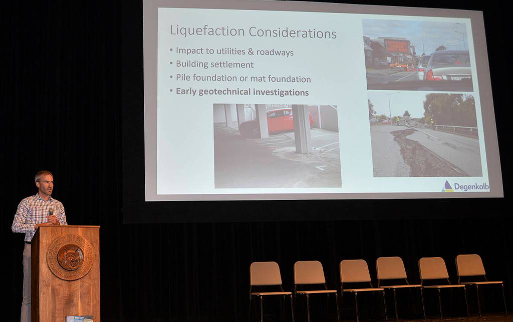“Most of this area is in the moderate to very high category for risk of liquefaction,” he told the crowd of about 40. “It’s going to force a pedestrian evacuation. Roads will be damaged, trees will be down, bridges could be out.”