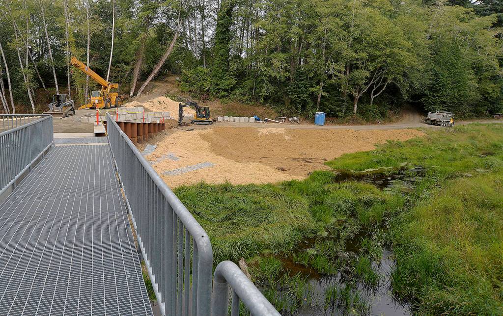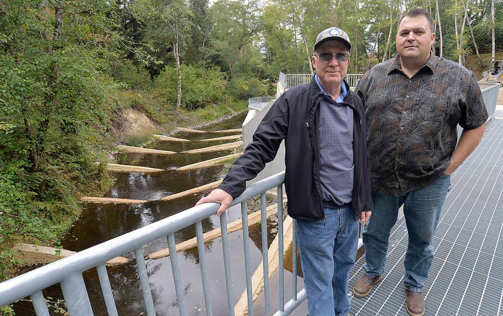 “This is the biggest little project I’ve seen in a long time,” said Cosmopolis Mayor Frank Chestnut from atop the walkway over Mill Creek last week. He said the city is shooting for a Sept. 22, “noonish” dedication for the greatly upgraded dam and park.