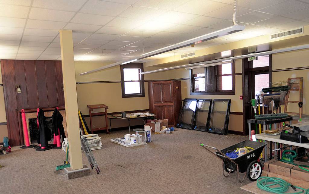 The meeting room on the lower floor of the museum has become the center of the interior construction effort and will serve as a staging area for crews. Thornton said as items within the library have to be moved to accommodate the work, the meeting room will serve to store much of it, meaning it is likely the last part of the library to be finished. Currently it has had drywall repaired, is getting new paint and storm windows installed. A new carpet will follow there and in the rest of the library.