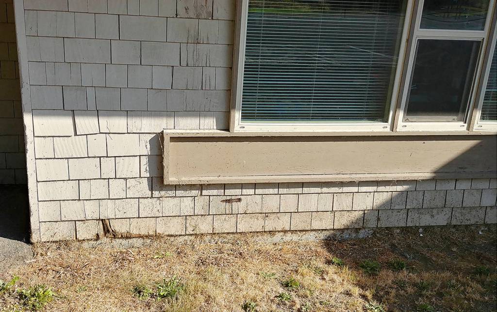 The cedar shakes on the high school roof have been worn thin by decades of Grays Harbor wet, windy weather. Villarreal said the heads of the nails through the shakes have rotted away, and winds can blow the shakes right off the roof. Many of the shakes are cupping, split or cracked, and outright missing in several spots, exposing the wood stripping and open canopy below to the elements.