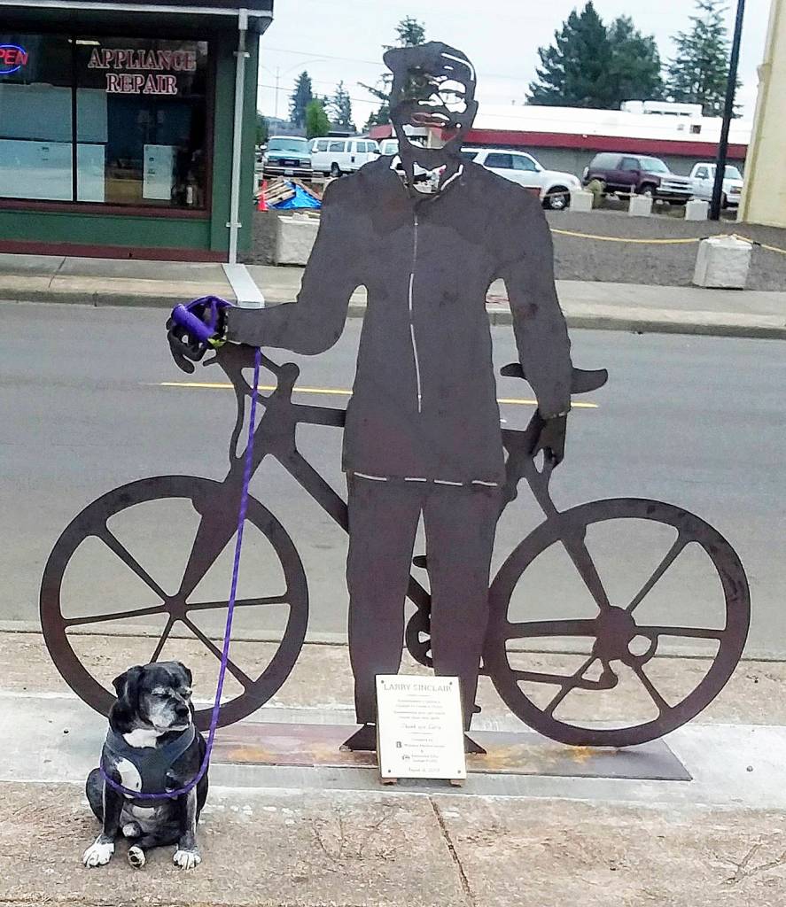 The plaque on the memorial reads: “Larry Sinclair. Sometimes it takes a village to raise a child. Sometimes you get back more than you give. Thank you Larry.” The statue was donated by the Willapa Harbor Lions and the Raymond Elks to honor a hardworking and dedicated member of their clubs and of the city.