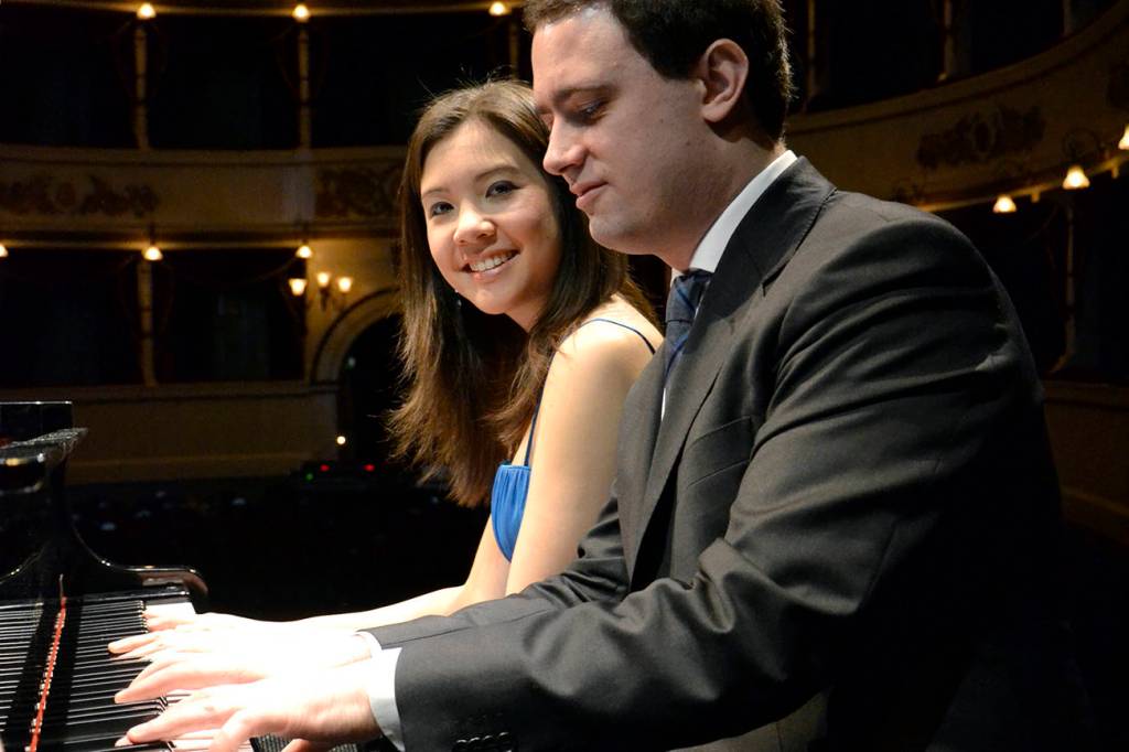 The husband-and-wife duo met during a piano festival in Switzerland in 2008. Trick, a St. Louis native, is a classically trained pianist; Alderighi is one of Italy’s foremost jazz pianists. Together, they perform extremely complex four-hand piano duets.