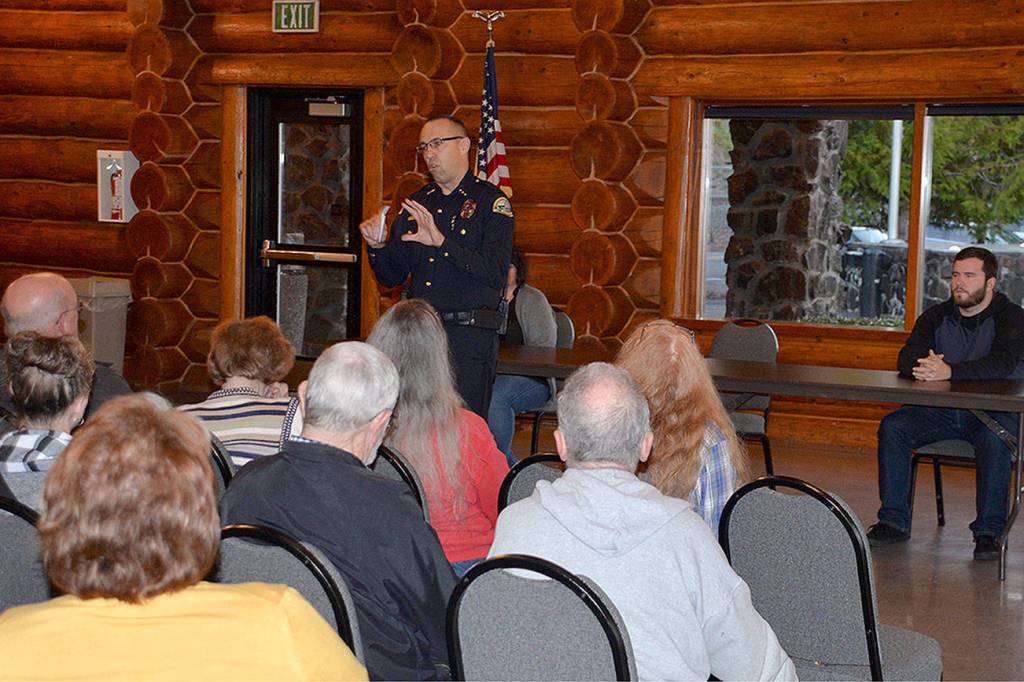 More than 55 people filled the Rotary Log Pavilion in Aberdeen Thursday night to hear Aberdeen’s new Police Chief Steve Shumate talk about his plans for the department and voice their concerns to him.