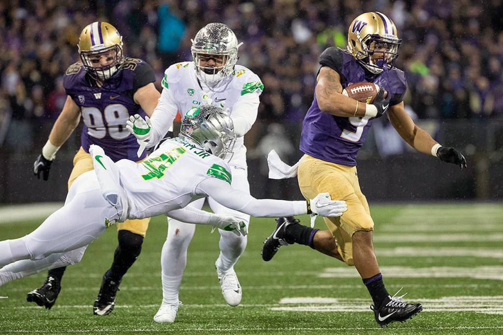 Defensively, Oregon gives up 108.6 rushing yards per game, which ranks second in the Pac-12. That will be a challenge for Myles Gaskin and the Huskies’ running backs. Getting the ground game going will be key.
