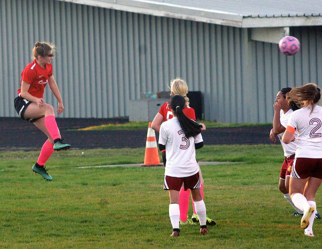 Katelynn Denny set the tone early with a header goal off of corner kick to lead Ocosta in its 4-0 home win to Winlock.