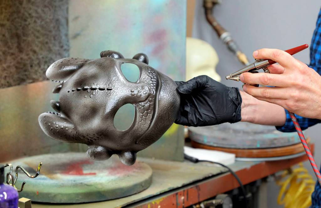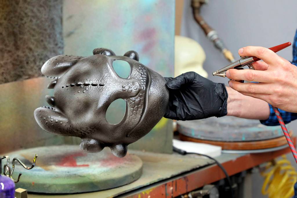 They take original artwork from the companies and use computers, 3-D printers, sublimation machines and old-fashion scissors, thread and fabric to mock up the final product.