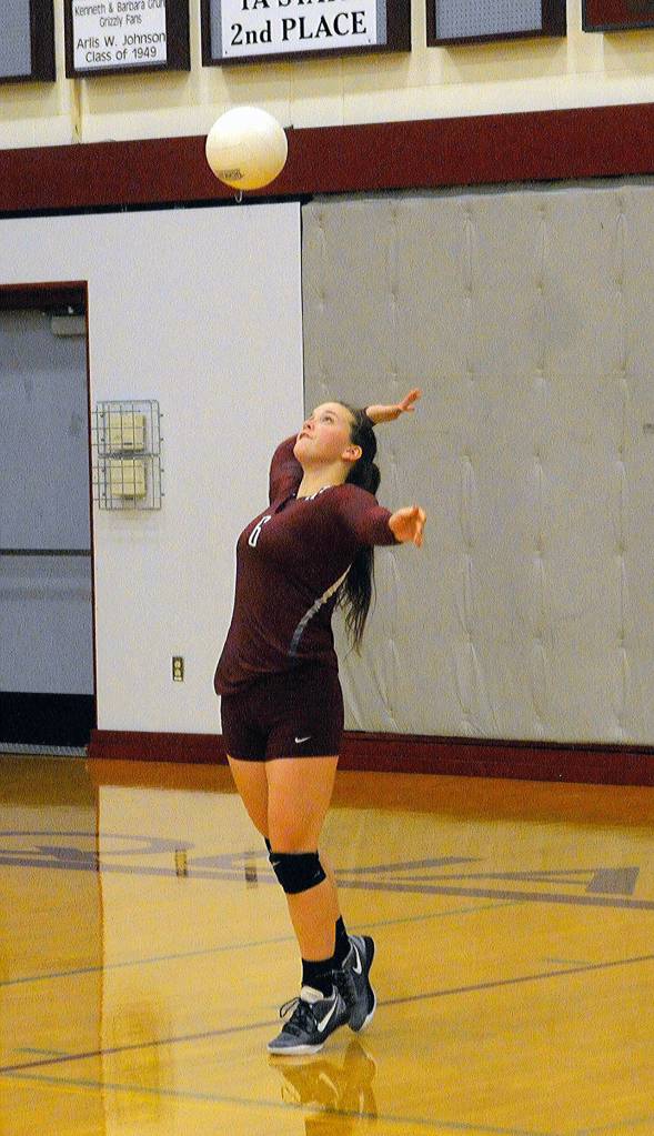Hoquiam’s ReyLynn Dunn prepares to serve against Montesano on Sept. 25. Dunn was named the 1A Evergreen league’s Most Valuable Player earlier this week. (Hasani Grayson | Grays Harbor News Group)