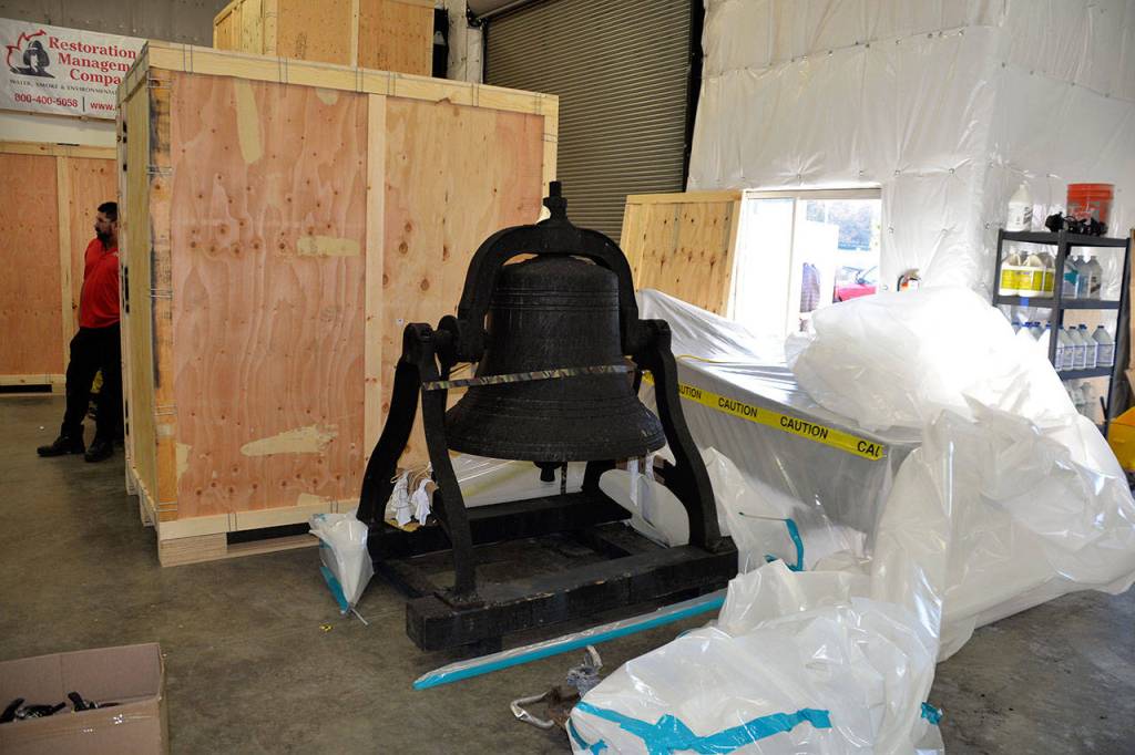 Along with Old Tiger, the restoration company cleaned a couple other final large artifacts last week, including a large metal bell from the steeple of First Congregational Church that was installed in 1890, as well as a wooden boat from the now-closed Burchcraft Boats company in Hoquiam.