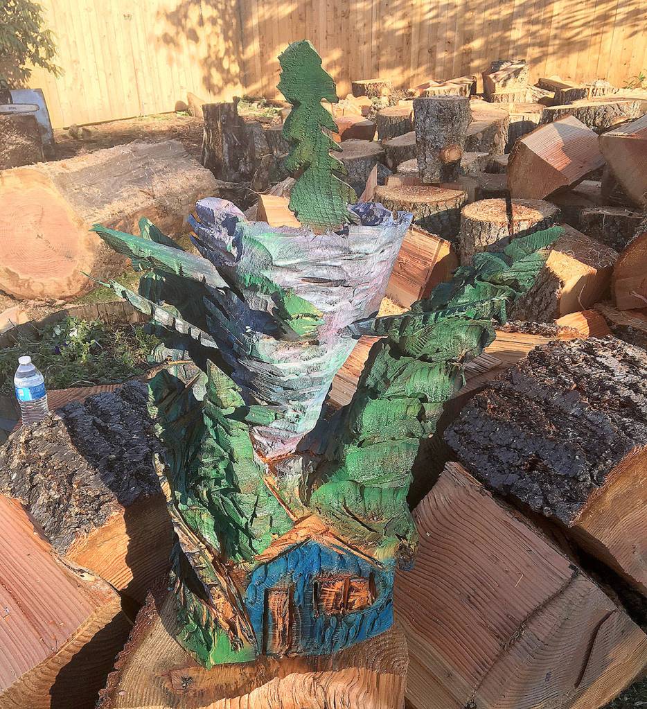 Mona Hass of Ocean City — the mother of one of the affected Port Orchard homeowners, Dominique Speak — decided something ought be done to boost spirits in that neighborhood. And, being heavily involved in the chainsaw art community, she thought it might be fun to assemble a group to create sculptures out of some of those logs and donate them to the community.