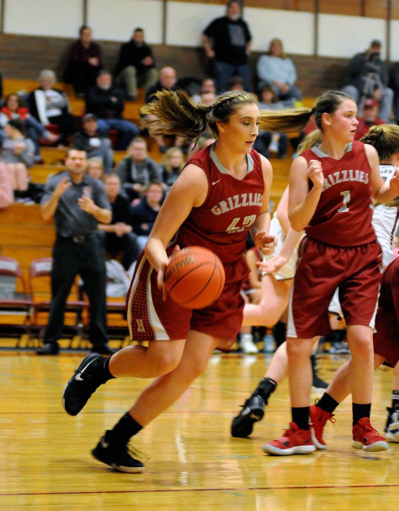 When play resumed, Monte’s Zoee Lisherness putback her own miss to slow the tide, but Hoquiam wasn’t finished. The Grizzlies ran off another eight straight points, closing the gap to 27-20 on a Jade Cox bucket with 1:44 left in the half, causing Graves to use another timeout.