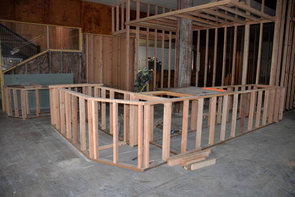 (Louis Krauss | Grays Harbor News Group) Early stages of the bar area planned for a Vietnamese restaurant in the Electric building.