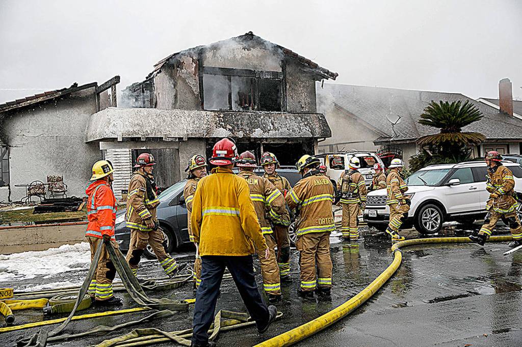 Two other people were taken to a hospital with mild to moderate burns, said fire Capt. Cameron Rossman, a spokesman for the Orange County Fire Authority. A firefighter suffered a minor ankle injury, he said.