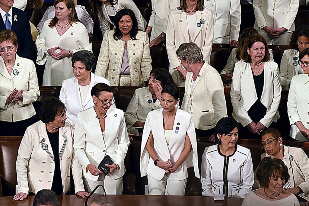 Democrats, decked in white to celebrate the 100th anniversary of Congress voting to grant women the right to vote, were a little confused about the praise from Trump, but thundered applause for the president.