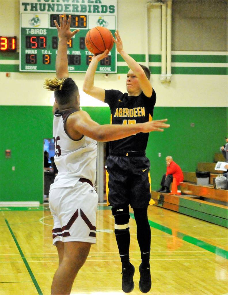 Top Players: WF West – Baker (17 pts.) White (10) Leandre Gaines (14 pts.); Aberdeen – Dublanko (21 pts.) Wyatt Johnson (11 pts.), Nick Farrer (8 reb.)